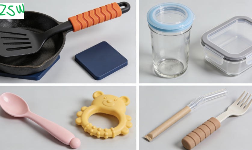 Wide sawetara saka aplikasi, bisa dicocogake kanggo aksesoris kitchenware kayata spatula nangani tutup, non-slip kaki; segel wadhah pangan kayata segel cangkir, strip plastik saka wadhah panganan seger; peralatan meja bayi kayata sendok panganan pelengkap sirah alus, piranti teething; bagean conveyor pangan kayata conveyor sabuk lapisan anti-slip; produk kontak pangan sing bisa digunakake kayata sirah alus jerami, lengen anti-slip tableware lan liya-liyane manufaktur macem-macem produk.